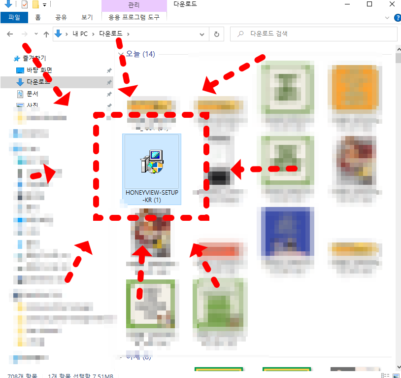 3. 꿀뷰 설치 파일을 다운로드하고 난 뒤 다운로드 폴더에 있는 꿀뷰 설치파일을 클릭해 줍니다.